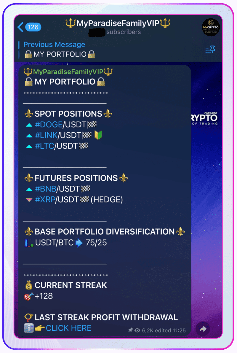 Unlike many free groups, MCP focuses on transparency, capital protection, and long-term consistency. The exclusive ParadiseFamilyVIP🎖️ service is limited to serious crypto traders, making it one of the most reputable communities in the crypto trading space.