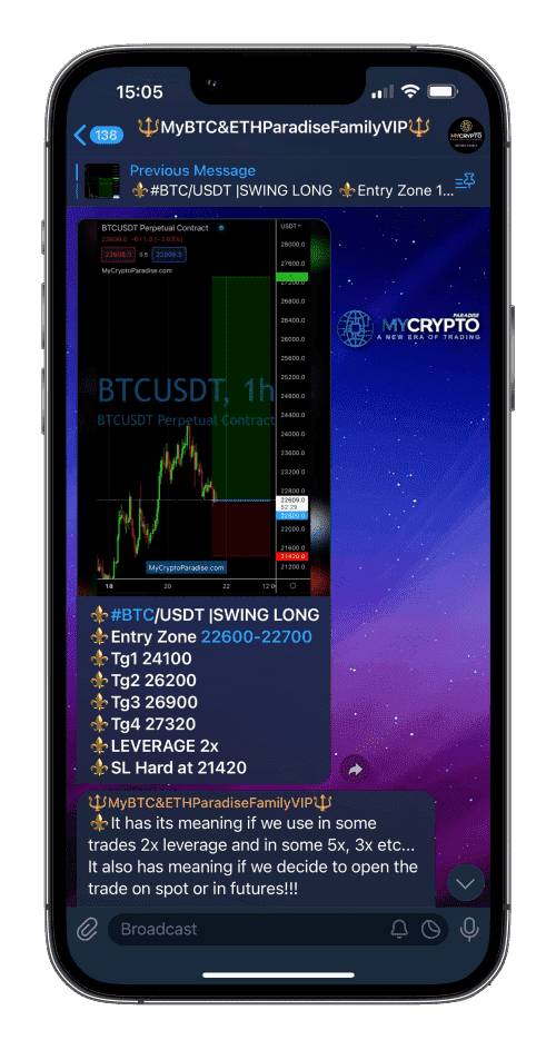MyCryptoParadise signals are built on detailed technical and fundamental analysis, aiming for consistency rather than unrealistic “100% accuracy” claims. Each signal includes a clear entry, target levels, and a protective stop-loss, so even when the market moves against a trade, losses are controlled.