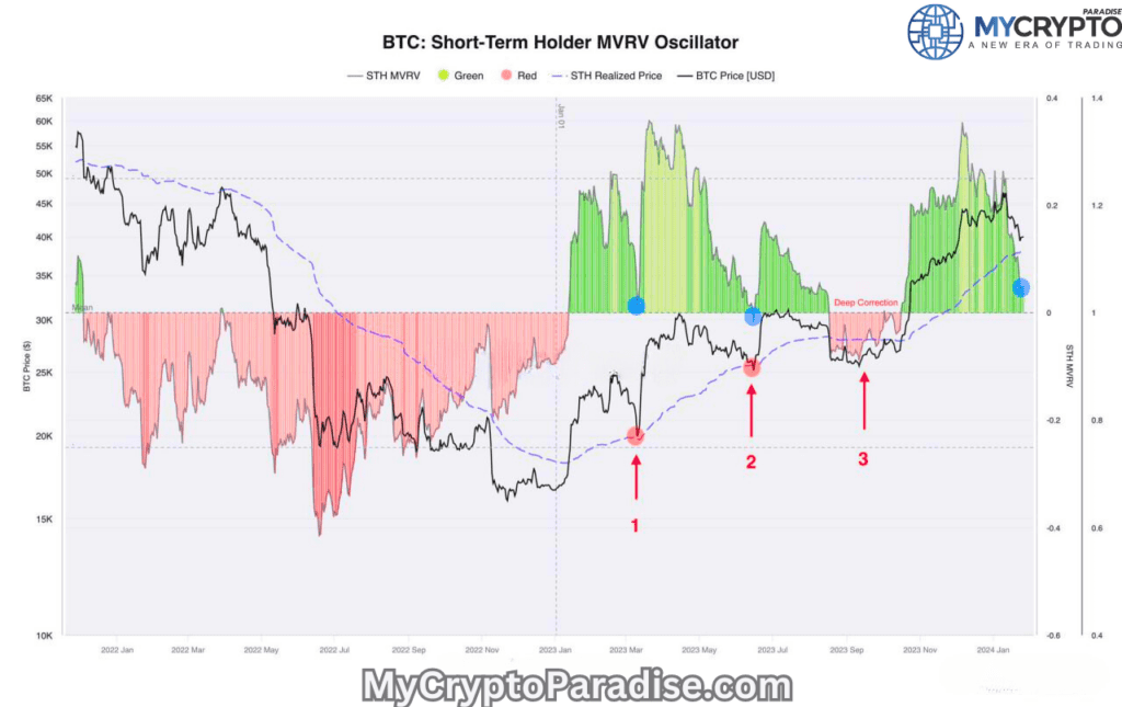 ????MVRV (Market Value to Realized Value) ratio for Short-Term Holders (STH) is a hidden gem that reveals how much profit or loss the holders are sitting on. Now, the MVRV STH is approaching the 0 mark, which is a massive signal that the correction is over.