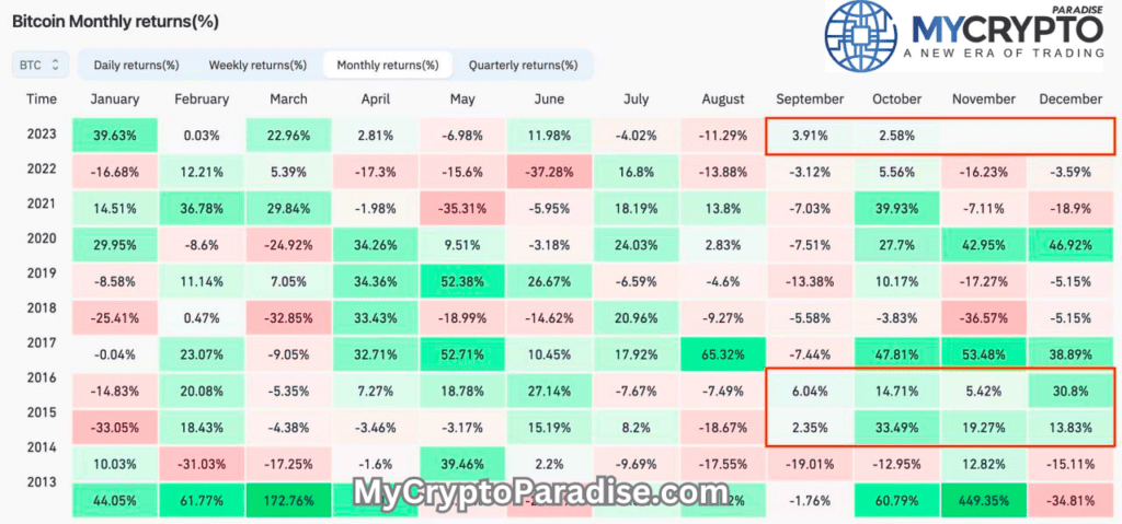 ????Every time September wrapped up in a sea of green, the subsequent three months witnessed a relentless Bitcoin rally. Twice this has happened, and here we stand again—one week into the journey with twelve more awaiting. Could history be hinting at a repeat performance?