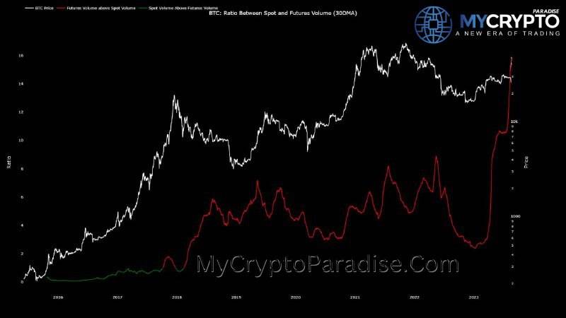 ????Even with Bitcoin’s price on a rollercoaster, the Spot Trading Volume compared to Futures Trading Volume is holding strong. Specifically, the average trading volume on Spot exchanges has nearly doubled, jumping from 19K to 42K. In absolute terms, it’s skyrocketed from 9K to a whopping 109K!