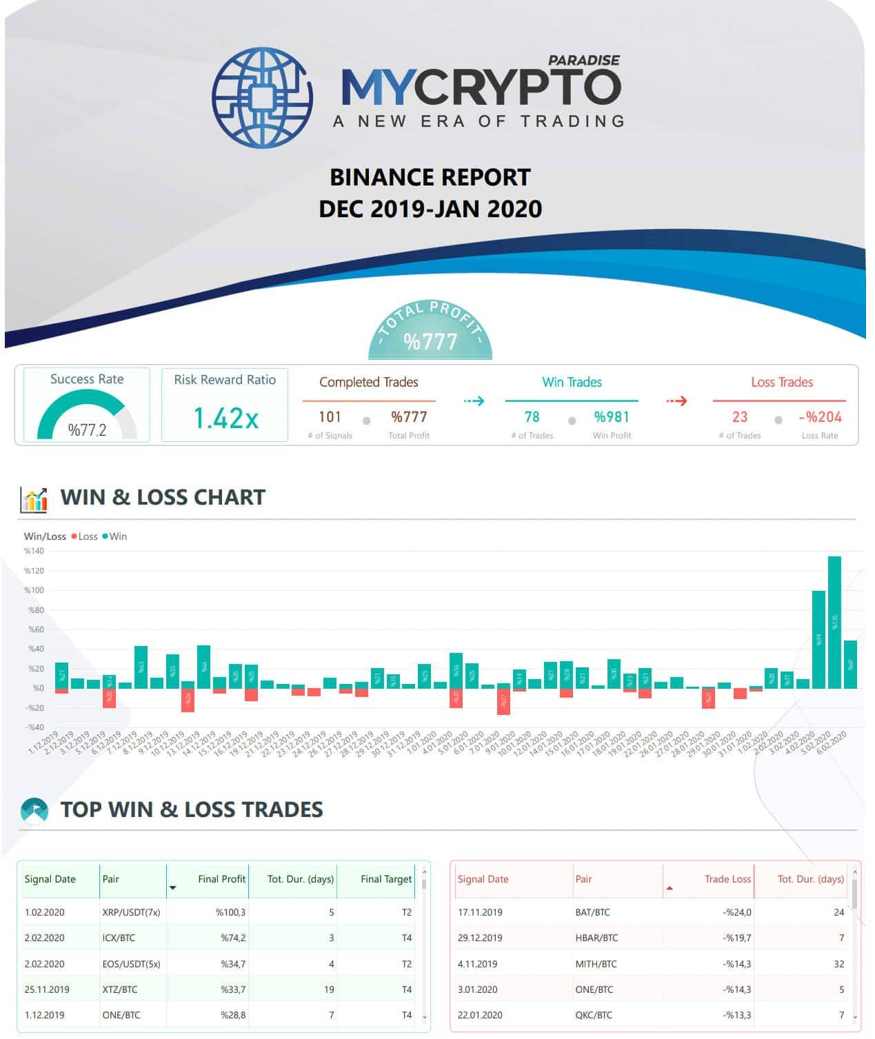 This is the complete report the team of my crypto paradise provided to showcase how successful they have been in providing their traders with the accurate crypto signals. This is the report from December 2019 to January 2020.