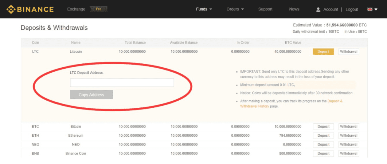 - Once you are at Binance.com, click ‘Funds’ and select ‘Withdrawals’
