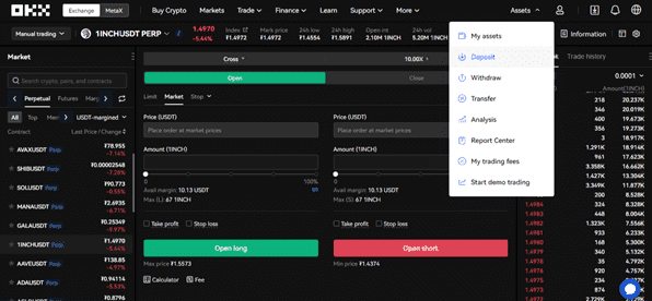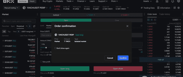 For example, USDT-margined trading pair (1INCHUSDT) is selected for this guide.