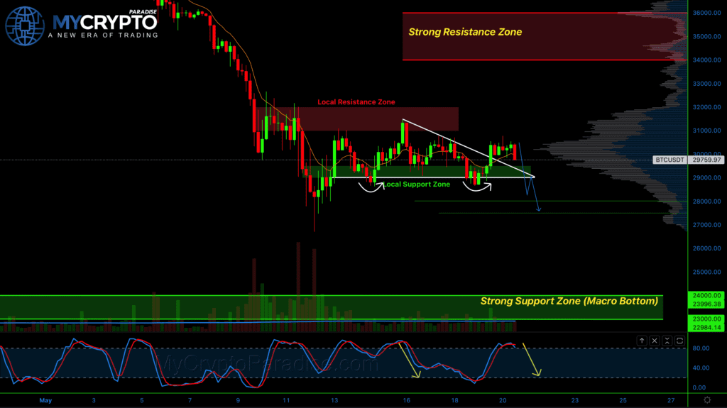 ????While on HTF, it may seem BTC is at support and maybe a good place to bounce (double bottom), as you can see on the chart.