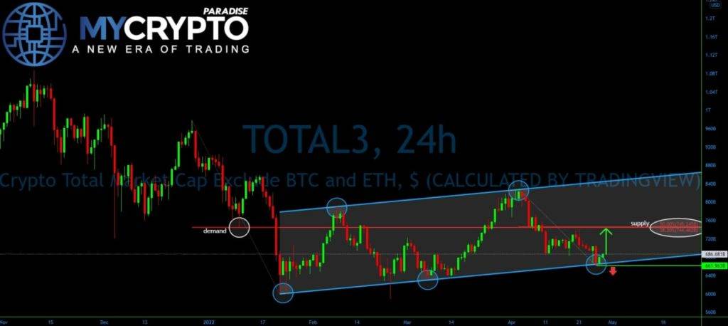 ????Today we will look at the TOTAL3 price action. TOTAL3 is a crypto market cap excluding the Bitcoin and Ethereum capitalization, which is providing the perspective for the Altcoin potential.
