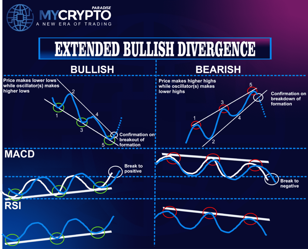 Identifying extended bullish divergence requires patience and a focus on the long-term trends. Here’s how you can spot this powerful pattern using various technical indicators.