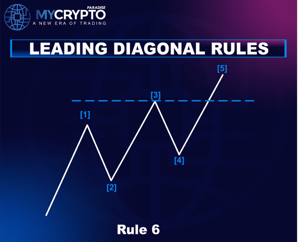 One of the most distinguishing features of the leading diagonal is that Wave 4 retraces into the price territory of Wave 1, but it must remain between the high of Wave 1 and the low of Wave 2. If Wave 4 exceeds this range, the structure becomes invalid and cannot be classified as a leading diagonal.