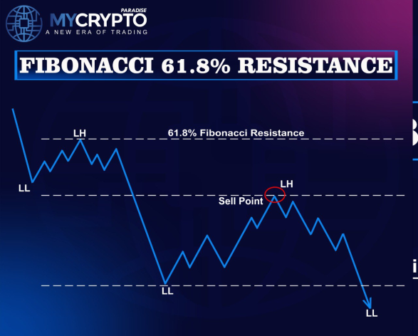- Fibonacci Retracement Ratio: The Fibonacci ratios of 38.2%, 50%, and 61.8% are identified as resistance levels during trend pullbacks. If Bitcoin retraces to the 61.8% Fibonacci level after a rally, it’s likely to face resistance at the ratio point.