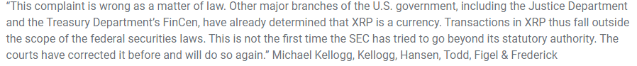 Another set of Ripple’s lawyers have termed the complaint as wrong by law and goes beyond the statutory authority mandated by the SEC