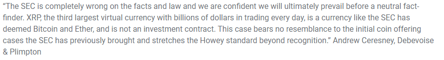 The company’s lawyers are anything but intimidated by the whole fiasco. Andrew Ceresney, Debevoise, and Plimpton have come out and accused SEC of being completely wrong in considering XRP as an investment contract instead of a currency similar to Bitcoin and Ethereum.