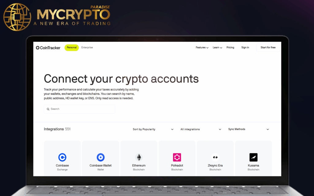 The platform integrates with more than 500 crypto exchanges and wallets, covering popular platforms such as Coinbase, Binance, Kraken, and Gemini, as well as blockchain wallets like MetaMask and Ledger.