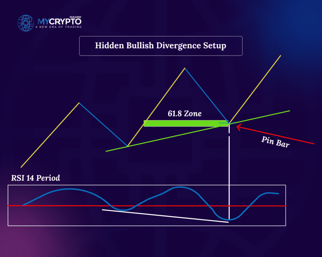 In an existing uptrend, bullish hidden divergence can signal a temporary pullback or consolidation phase before the upward movement resumes. Traders can use this opportunity to add to their positions or enter new long trades, expecting the trend to continue.