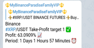 Here you can see that on February 01, 2020 we provided a signal for Ripple on our telegram group called,” My Binance Paradise Family VIP”.